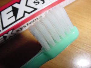 ヘッドは小さめの歯ブラシのかたさはかため。